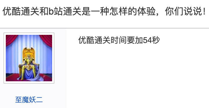 即便是“優酷通關”在後來逐漸變成了“B站通關”,這些視頻的存在意義都相對單純,受眾也都相對較為小眾且固定。唯一的區別,只是取決於出現在視頻前的廣告時間長短而已。