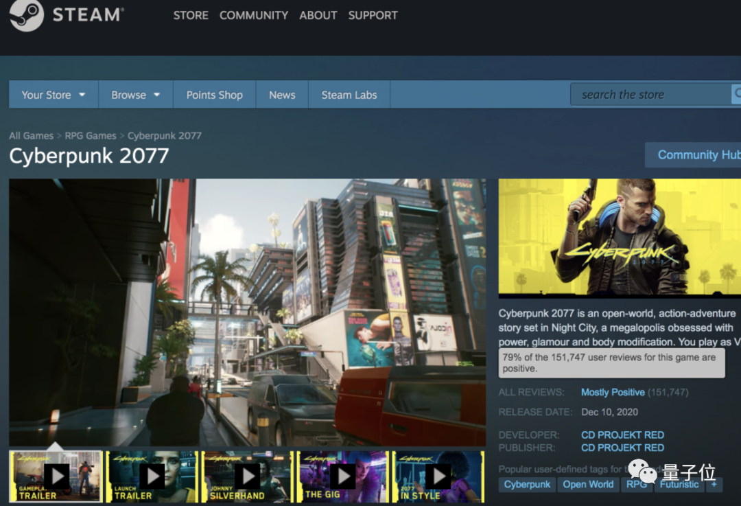 但是,《賽博朋克 2077》剛上線,按照Steam的評分規則,得到了「多半好評」。