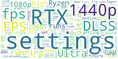 在配置方面,出現頻率最高的詞彙是遊戲硬件配置相關,比如RTX、1080P、DLSS等等。