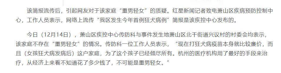 你可以説這一家人,在狗疑似狂犬病的情況下還把狗放了不負責任,但説他們重男輕女看着自己女兒去死就過分了。