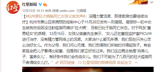 家長自己表示作為父母,他們問心無愧,甚至在家裏是富養女兒窮養兒子,絕對不可能幾百元的狂犬疫苗不捨得給女兒打。