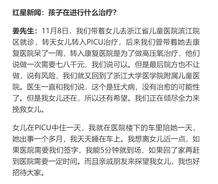 狂犬病發病後的死亡率近乎100%,全世界發病者中治癒的案例屈指可數,但家長還是堅持讓孩子在ICU治療,每天花着四位數甚至五位數的治療費。