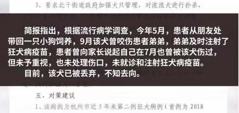 “杭州姐弟先後被狗咬,姐姐未打疫苗腦死亡,弟弟及時打疫苗無大礙”。