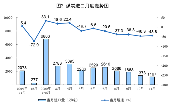 昨天(15日),國家統計局發佈11月份數據,其中煤炭進口量同比下降43.8%,幾乎是上年同期的一半!