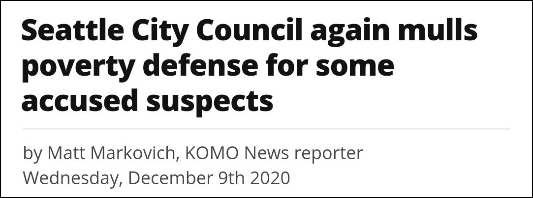 據美國西雅圖媒體Komonews網站日前報道,當地時間12月8日,西雅圖市議會公共安全委員會(下稱委員會)討論了一項法案:因為貧窮而犯下輕罪可以免於處罰,甚至於是免於起訴。