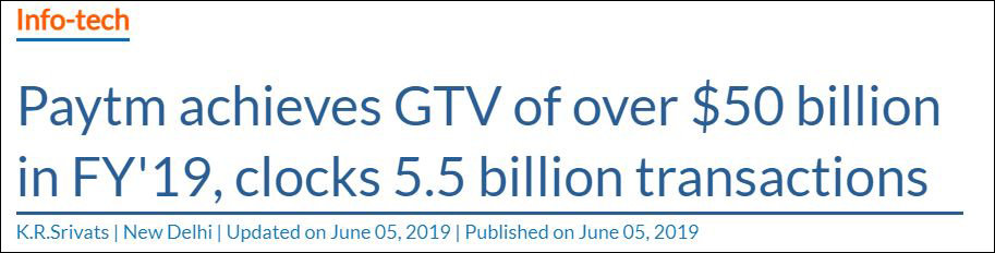 據印度新德里電視台(NDTV)2019年10月報道,有“知情人士”表示,Paytm會從中國螞蟻金服集團、日本軟銀集團和美國對沖基金Discovery Capital Management手中拿到20億美元融資,以抵禦競爭對手的衝擊。但上述公司當時均對此事不予置評。