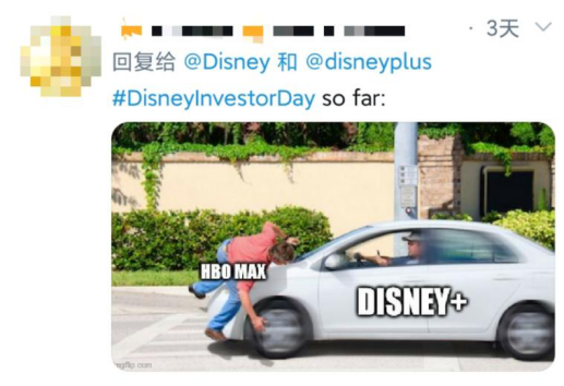 HBO Max正在龜速行走,Disney+一腳油門將其撞飛——這是Twitter上最近被網友們瘋狂傳閲的一張表情包。