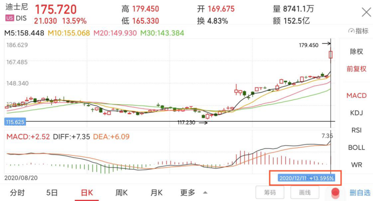 受今年疫情影響,迪士尼各方面業務都損失較大,先後傳出樂園關閉、高管降薪、裁員數萬人等一系列不利消息。但在Disney+等流媒體業務的利好信號下,迪士尼的股價今年下半年一直上升,接連創下歷史新高。