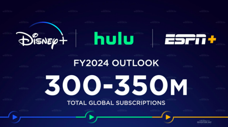 在上週的迪士尼投資者日上,迪士尼大幅上調了流媒體用户預期:基於Disney+上線以來遠超預期的表現,預計到2024年,迪士尼旗下的Disney+、Hulu、ESPN+三家流媒體的全球付費用户總數將達到3-3.5億,其中Disney+將有2.3億-2.6億用户。