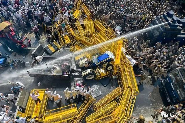因此在政治力量和農民自發的相互作用下,印度農民抗議活動規模越來越大。現在連運輸工人也加入了抗議活動,據印媒稱有1300多萬卡車司機進行了罷工,湧向新德里的農民則在郊外封鎖鐵路、公路、邊界(邦)。