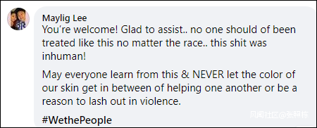 “不管任何種族的人都不應該被這樣對待……不要讓我們的膚色成為互相幫助或者暴力攻擊的理由。”