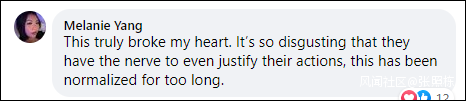 “這真讓我心碎。這太噁心了,他們居然有勇氣為自己的行為辯護,這種事情已經被常態化太久了。”