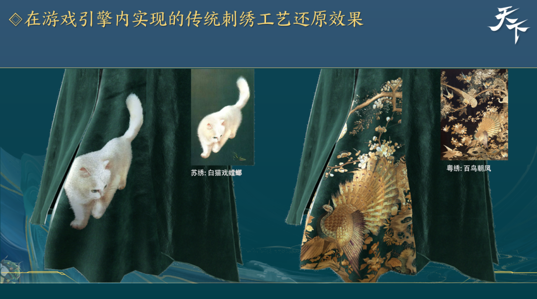 時裝外觀缺乏吸引力?那就在應用更多變的色彩同時,採用更多先進技術支持的表現效果,比如在時裝刺繡材質上實現PBR材質,用時裝在遊戲引擎內實現對現實中刺繡工藝的還原。