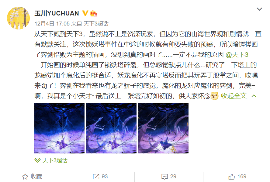 他在帖子中表示鎖妖塔已經被毀,還配上了鎖妖塔崩裂的圖片。