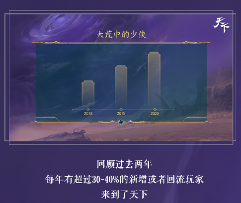 遊戲剛舉辦過的十二週年漢文化線下活動上,策劃透露了一項數據:從2018年到2020年,端遊《天下3》每年都有30%~40%的玩家增長幅度。在國內端遊大體穩定在原有盤子的背景下,這顯然是個能打破人們固有認知的例子。