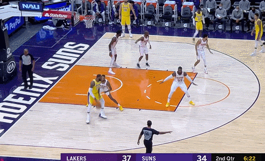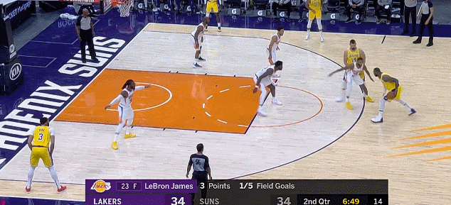 太陽的第一個進攻回合,就是讓保羅和艾頓發起擋拆,保羅突到罰球線位置擊地給艾頓,艾頓打成太陽的第一次進攻。保羅今天的8次助攻裏,起碼有4次是直接給艾頓喂的餅。