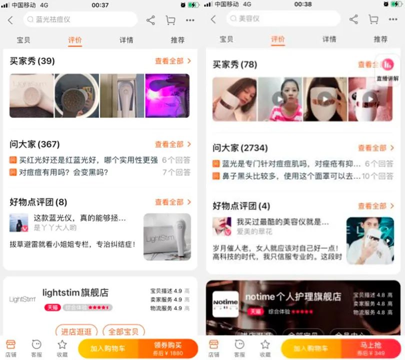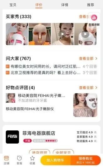 有意思的事情發生了,FEIHAI的“問大家”裏排前兩位的就沒有“智商税”問題了。為了驗證這個情況,我又找了價位在兩千以內的Lightstim,還有佳琦哥哥力推的價位在幾百塊的Notime,“智商税”的問題都沒有再出現。
