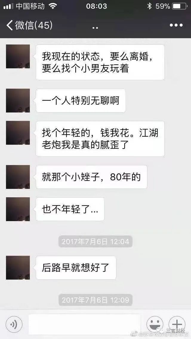 同時,蘇享龍還曬出多張聊天截圖,內容疑似翟欣欣與朋友的聊天記錄。