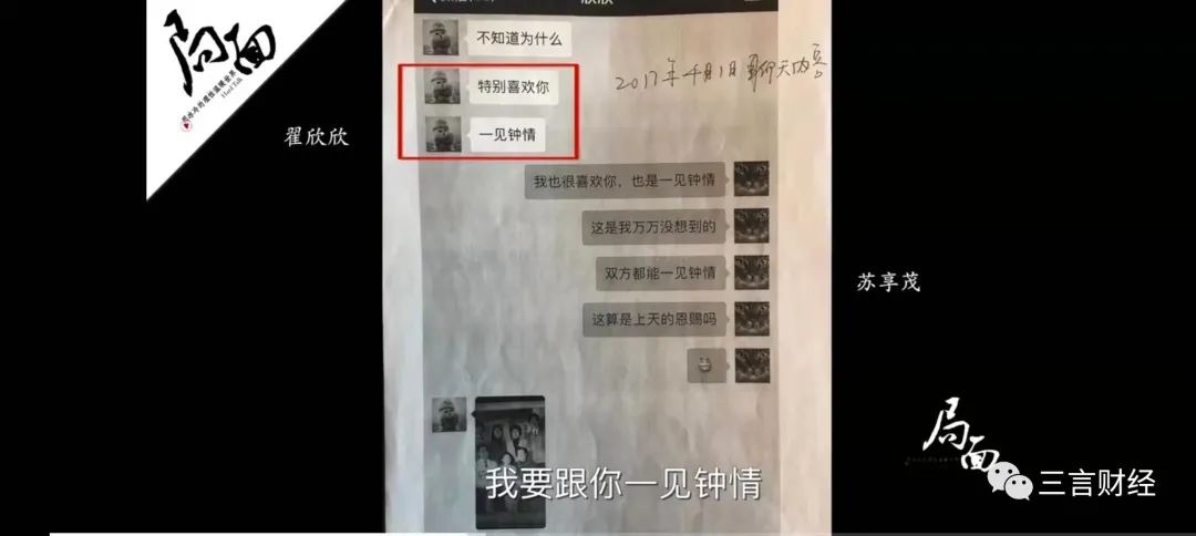 據瞭解,蘇享茂臨終前發佈了與翟欣欣的聊天記錄,爆料説兩人的婚姻關係存續期間,蘇為女方購買海南清水灣住房一棟,特斯拉電動汽車一台,匯款若干次,累計花費近1300萬元。
