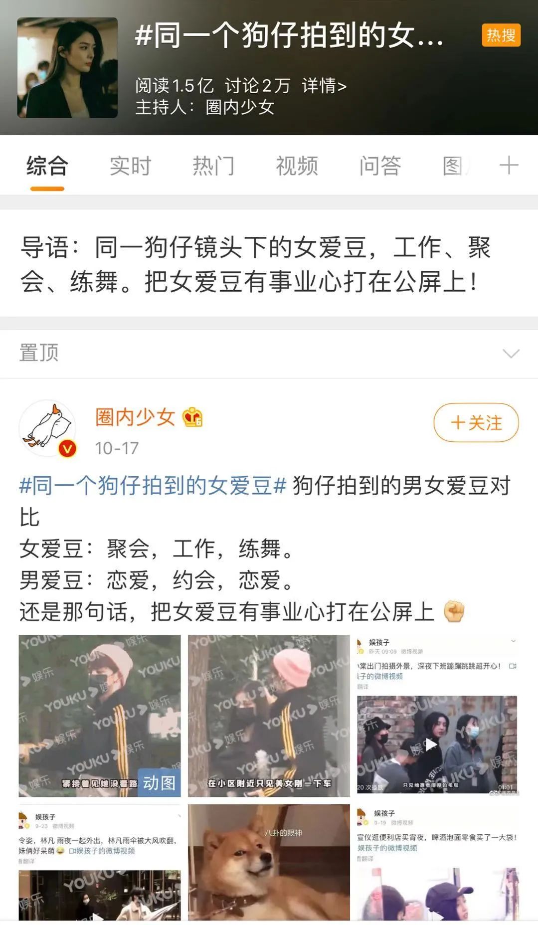 △微博之前有個話題#同一個狗仔拍到的女愛豆#,雖然有點片面,但就概率而言,女偶像塌房的比例確實比男偶像低