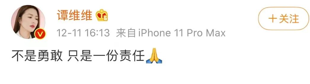 很喜歡譚維維在微博説的:“不是勇敢,而是一份責任。”