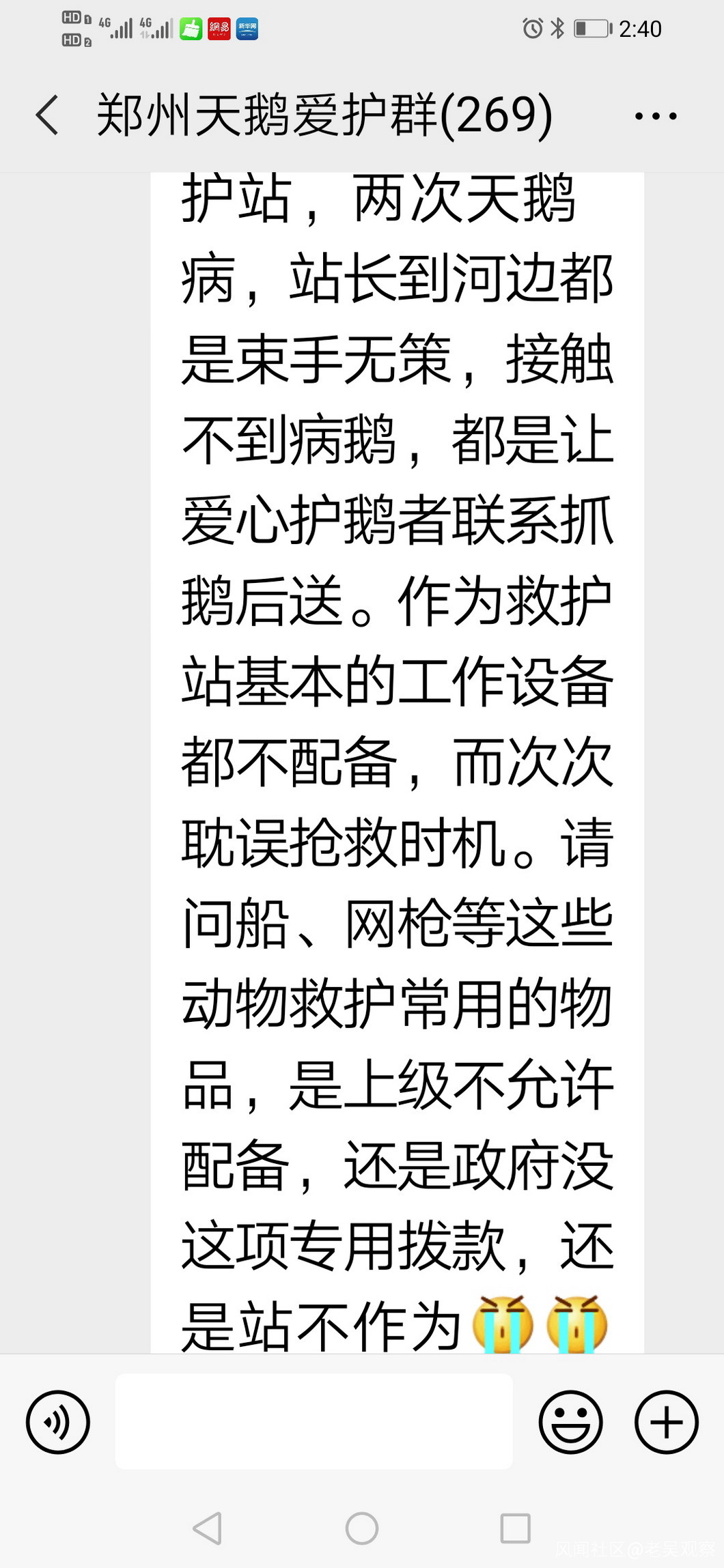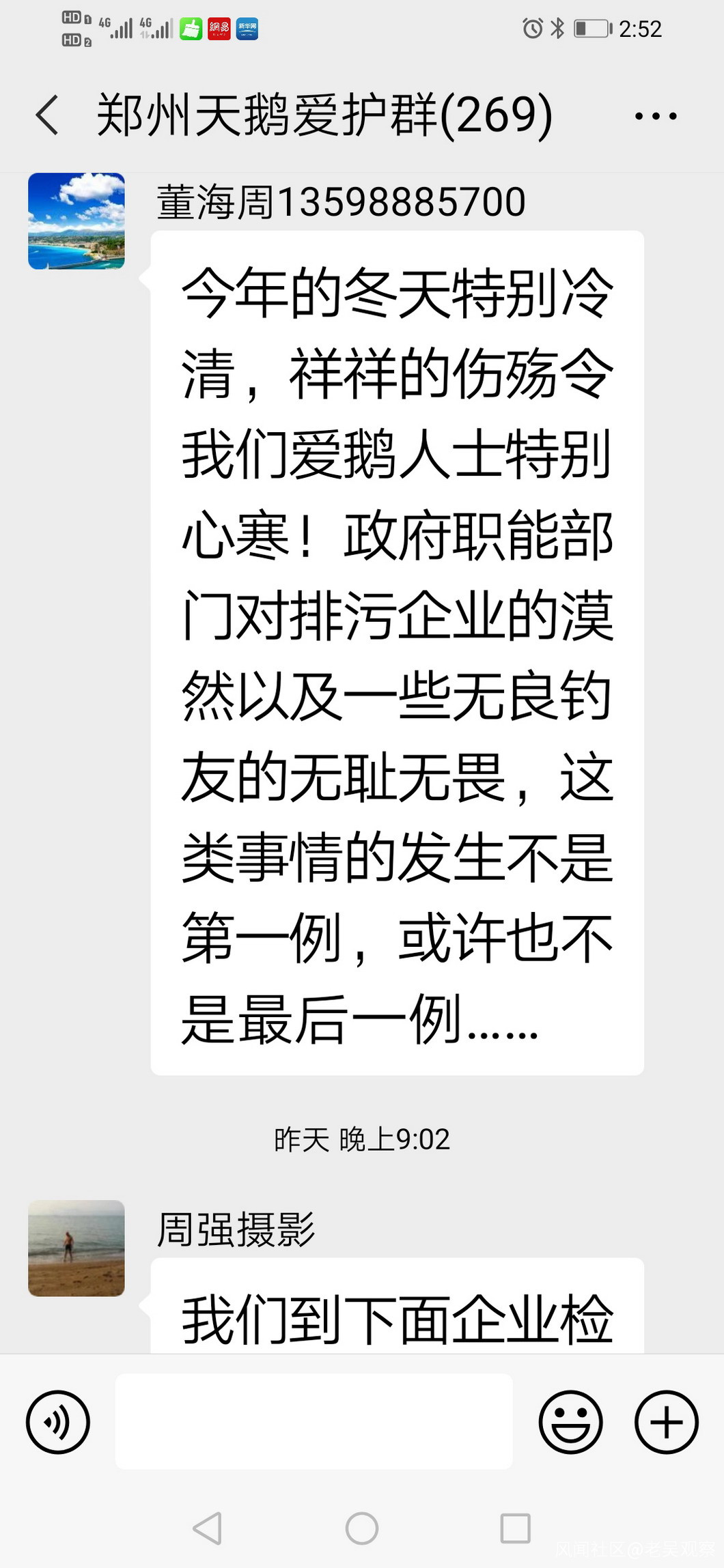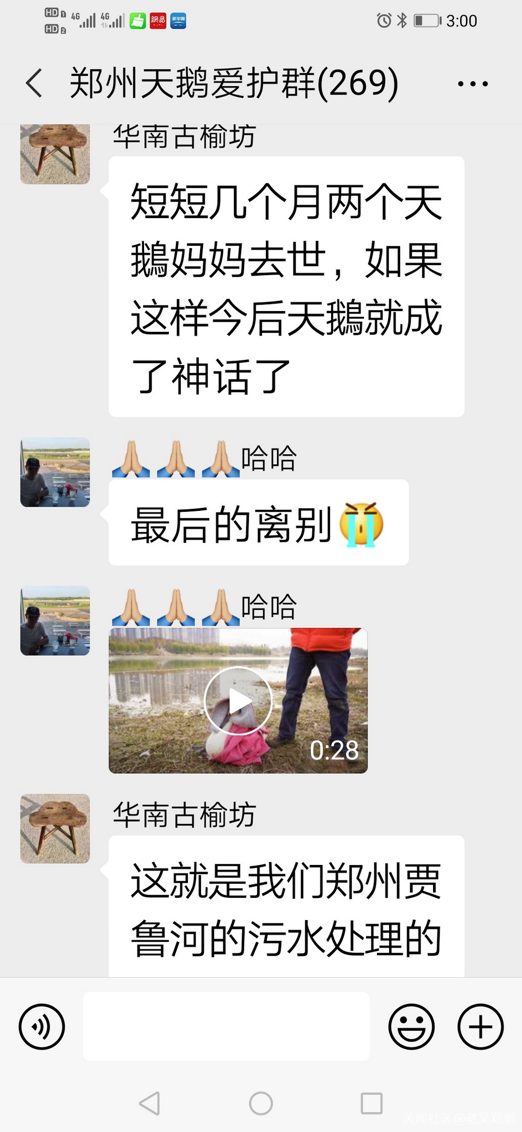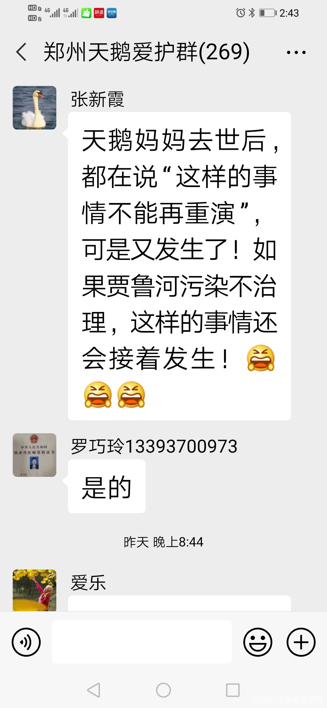真是禍不單行,12月15日晚,天鵝祥祥救無效死亡,12月16日晚,天鵝祥祥的死亡的消息,經河南電視台都市頻道報道後,鄭州天鵝愛護微信羣裏,熱心市民紛紛發聲: