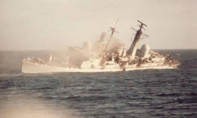 (英軍考文垂號驅逐艦被飛魚導彈擊中即將傾覆)