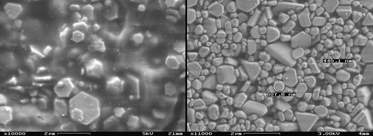 膠片也是一樣。有人説,膠片的顆粒是分子級甚至原子級的大小,不知道他們從哪裏得來如此錯誤得離譜的印象。膠片顆粒的大小是由鹵化銀決定的。左為鹵化銀在藥膜裏的樣子,又為鹵化銀顆粒的本身。比較下面的2微米尺度。