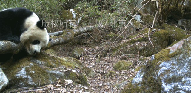漫山遍野有毛冠鹿,小麂,黑熊,熊貓,紅腹錦雞等等動物,我們能數出幾百個名字。這麼多動物裏面竟然只有兩種動物對紅外相機感興趣。一種是所有人都知道的聰明的金絲猴,靈長類動物,毋庸置疑,對世界有好奇心;而另外一種竟然是大家都覺得呆呆笨笨的,好像對這個世界很茫然、很無所謂的養生型的熊貓。