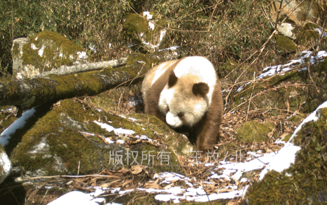 在工作進行到半年之後,我們發現這個山裏面還有一些以前我們所不知道的動物存在,比如會拍彩照的熊貓。傳説之中熊貓只能拍黑白照片的情況,在這隻棕色的大熊貓身上並不存在,它不需要吐出舌頭就可以拍彩照。而當這隻棕色大熊貓獨特的特性出現之後,迅速有一隻黑白熊貓跑到了棕色大熊貓的這個區域,它好像敏鋭地感覺到了棕色大熊貓的存在,在這個地方打滾,在這個地方留下毛髮,留下自己的味道。而就在兩天之後的夜晚,這隻棕色大熊貓又回來,它們好像在隔空進行對話。