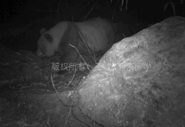 為什麼這麼説?我們第一次見到熊貓是一個特別“美好”的故事,故事發生在秦嶺。進入秦嶺我們把儀器設置在了山上,這是彬彬老師剛才提到的紅外觸發相機,可以探測動物的體温;當動物經過時會自動留下影像記錄它們的行為、出現的時間和分佈區域。而這隻熊貓對我們的紅外相機迅速做了一件有趣的事。
