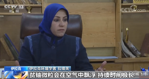 伊拉克環境學者 拉緹芙: 貧鈾微粒會在空氣中飄浮,持續時間極長,還會被風吹到很遠的地方,留在土壤、植物和水系裏。在雨季到來時,貧鈾微粒進入深層土壤,污染地下水系。這之後問題就嚴重了,因為它會進入食物鏈,通過植物傳給動物和人 。