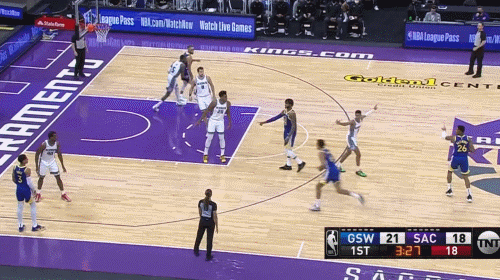 一些非常漂亮的配合,仍然是勇士慣用的戰術,庫裏不斷跑8字,利用各種掩護獲得空位投三分。