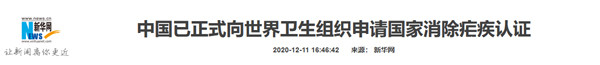 據新華社報道,12月11日,中國已正式向世界衞生組織申請國家消除瘧疾認證。