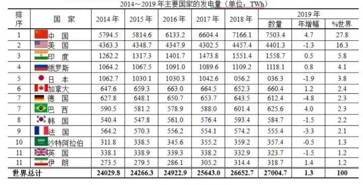 請不要懷疑中國電力的水平和能力,2020年,中國仍然是世界上電力生產最多的而且是增幅最大的國家,2019年發電量達7503.4TWh,比2018年增加了4.7%,中國發電總量佔世界總量的27.8%;而美國、日本、德國、法國和英國均降低。也就是説,越往後發展,中國的電力,越會向“全球電力”發展,國家電網,未來很有可能,變成“全球能源”,這也是理所當然的,你都是“世界工廠”了,最後必然也是“世界電網”。