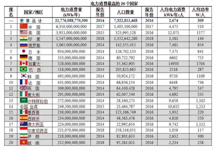 中國人口約佔全球的19%,2019年中國電力消費量佔全球的27.8%,但人均電力消費量仍然比美國低。另外,中國再生能源發電又比美國高。權衡着來看,中國人生活方式還是比美國人環保、低能耗,但我們的人口總量擺在這裏,生產力擺在這裏,我們必然是全世界第一大“用電狂魔”。