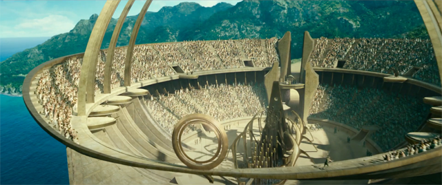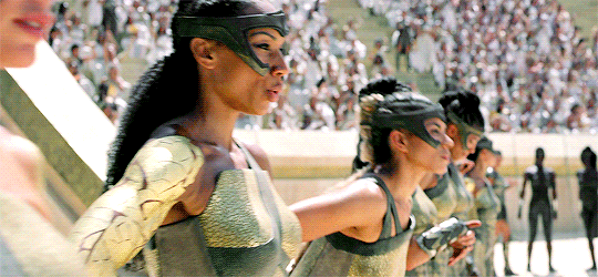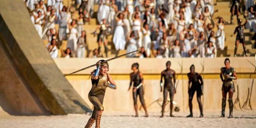小戴安娜(莉莉·阿斯佩爾 飾)與幾位亞馬遜女戰士,在宏大的競技場中為我們奉獻出一場“神仙”奧運會。