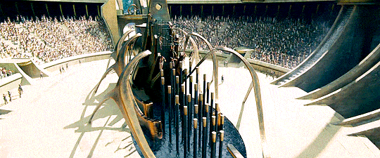 為拍這場運動會,製作團隊不僅搭建了高達數十米的實景巨柱,還動用了14台起重機和多台IMAX攝影機……最終呈現的視聽效果堪稱史詩級,絕對是會名留影史的震撼大銀幕開場!