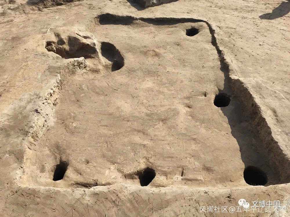 兩座房址平面均呈長方形,為半地穴式建築,未發現門道。F1保存較差,居住面一側見有圓形燒結面。居住面上發現馬頭骨、肋骨及馬蹄釘等鐵器,另外還出土較多的鐵塊、鐵渣等;F2長360、寬245釐米,牆壁保存最高約25釐米。房址內發現柱洞5個,深約14--25釐米。居住面大部分經過烘烤,較平整堅硬。居住面分二層,最厚處近4釐米。灶坑位於房址西側。房址內堆積為黃褐色砂質土,包含陶片、紅燒土塊、鐵塊、動物骨骼等。可辨認陶器器形有罐、壺、盆一類生活用具。