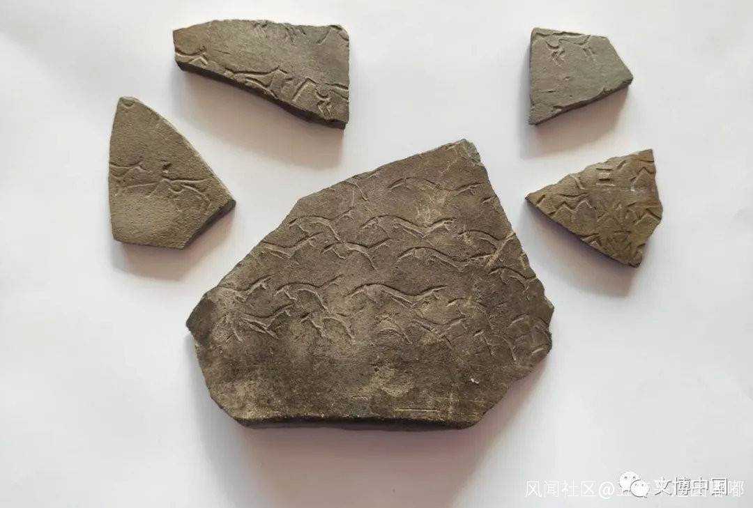 另外,小呼和格勒遺址出土陶器的紋飾上反映了鮮卑人以畜牧為主的經濟特點。在小呼和格勒遺址陶器紋飾中,除大量的幾何圖案之外, 還有一些馬的圖案。在發現的馬紋裝飾中有多種不同姿態的馬紋圖案,或萬馬奔騰, 或漫步草地,或以馬為主的複合圖案。馬的體態也或肥或瘦。在小呼和格勒遺址陶器紋飾中還發現有氈帳及太陽紋的圖案,表現了鮮卑人遊牧生活的場景。