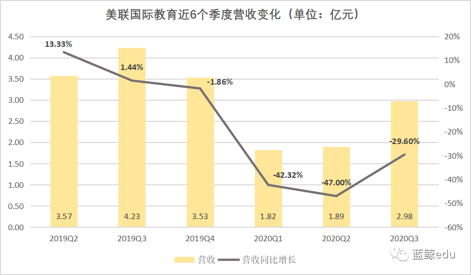 美聯國際教育2020財年前3個季度營收僅為6.69億元,該公司的Q4營收需達到7.79億元才能與2019年營收持平,從目前的狀態來看,2020財年營收可能還會出現大幅下滑。