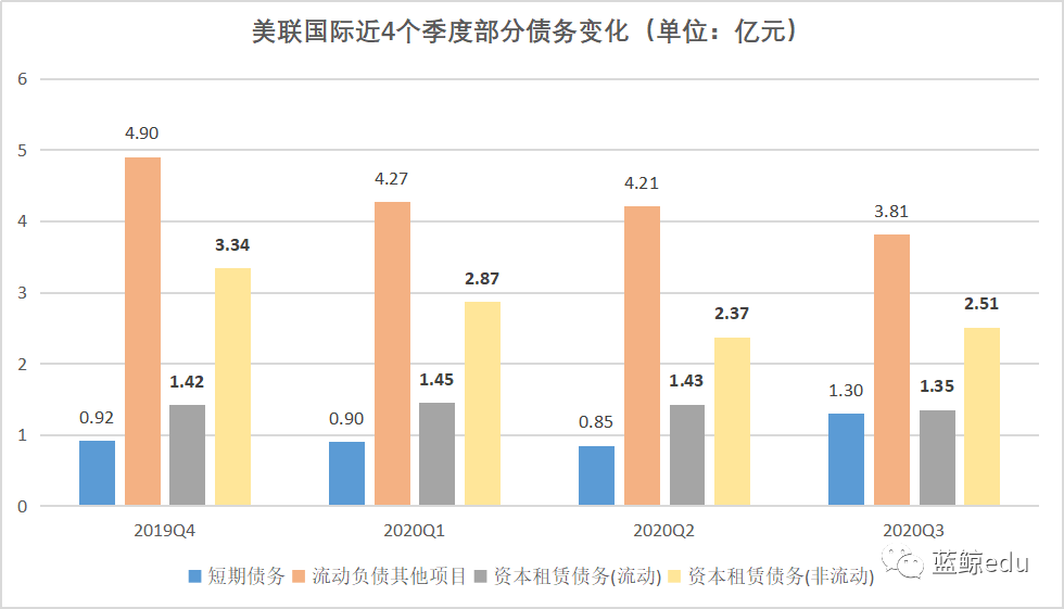 與此同時,美聯國際教育的資本租賃債務居高不下。近4個季度,資本租賃合計佔總負債比重分別達到28%、27%、25%、25%。