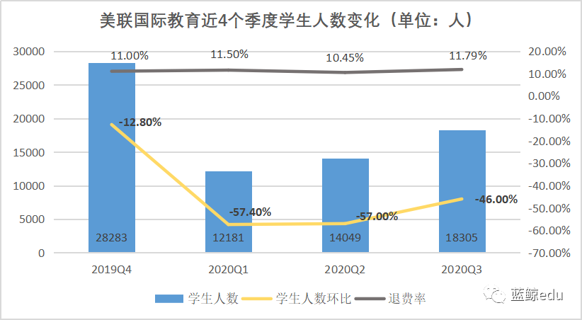 此外,近4個季度,美聯國際教育的退費率始終居高不下,退費問題始終考驗着美聯國際教育的現金流。