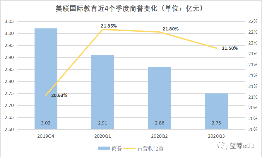 除此之外,在總資產中,商譽一項在近4個季度中均佔比超過20%,而在美教育中概股中,主營線下業務的公司,商譽如此之高的屈指可數。商譽值過高,對上市公司的資產結構或將造成非常不穩定的負面影響。以A股的先例來看,商譽減值往往會造成鉅額虧損。比如,2017年,勤上股份因為龍文教育計提了高達4.2億元商譽減值。2018年,和晶科技因澳潤科技計提3.75億商譽減值。此外,三盛教育、秀強股份、昂立教育等等都曾因商譽減值問題出現鉅額虧損。