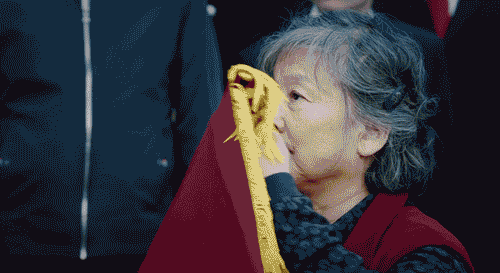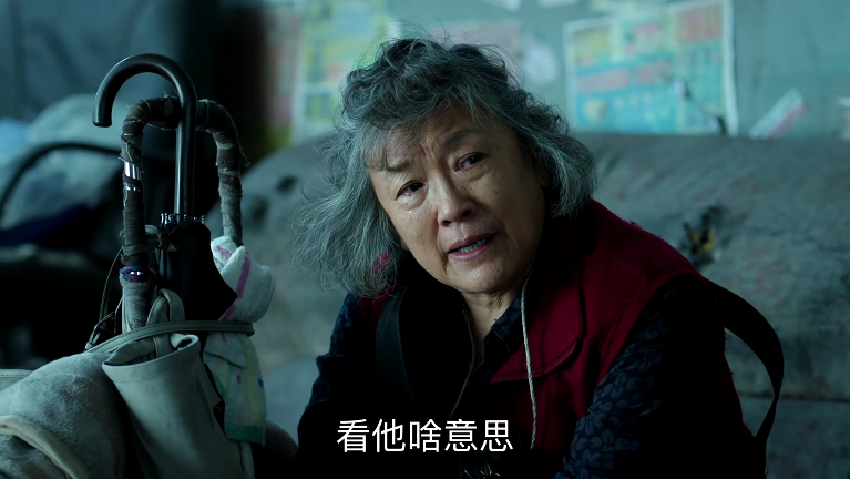 想渲染情緒能理解,但這個反轉並不突然,前面提到了老太太全程高舉錦旗擋臉,一看就是來“砸場子”的,所以突然慢節奏其實很尬: