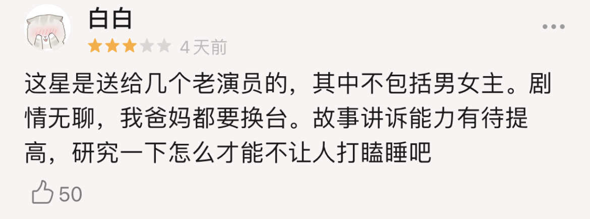 即使有一眾老戲骨加持,男女主的演技還是受到了質疑。