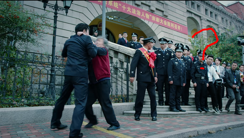 這段的背景音樂就更出戲了,是一段高亢的男聲美聲,可能導演想走藝術路線,但用力過猛,放在這部嚴肅的檢察劇裏顯得格格不入。