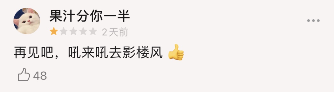 截至12月18日14時,該劇豆瓣評分已從7跌倒6.6,53.4%的觀眾打出了3星及以下的評分。