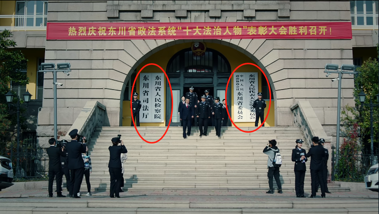 第一集開頭,東川省“十大法治人物”表彰大會在一棟只有兩層但掛着該省人大常委、政協、司法廳、檢察院四個牌子的辦公樓裏盛大舉行。