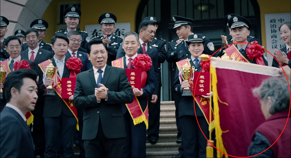 隨後,當着媒體的鏡頭,當地“九三零殺人案”死刑犯家屬胡雪娥(宋春麗 飾),以送錦旗為由向東川省檢察院檢察二部主任何樹國(黃俊鵬 飾)發難,突然翻出藏在錦旗背後的第二張錦旗,批其草菅人命,一時成為輿論焦點。